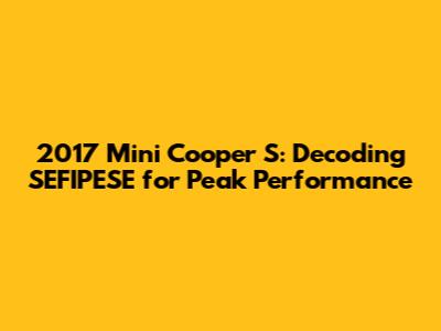 Alright, let's get down to brass tacks. SEFIPESE isn't some fancy, obscure term; it's an acronym that encapsulates several critical systems within your 2017 Mini Cooper S. Each letter represents a vital area you need to understand to ensure optimal performance and longevity for your beloved car. Now, here is a detailed breakdown of each component: