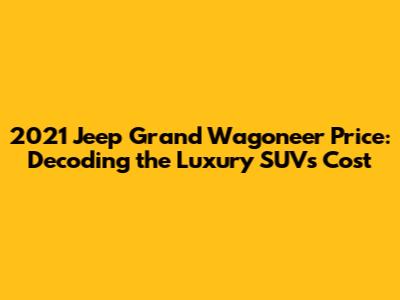 Hey car enthusiasts! Are you guys curious about the 2021 Jeep Grand Wagoneer price? Well, buckle up because we're diving deep into the world of this luxurious SUV, breaking down its cost, features, and everything in between. This vehicle marked a significant return for Jeep, reintroducing a nameplate that once symbolized premium American craftsmanship. Understanding the price is crucial if you're considering adding this beauty to your garage. So, let's explore the pricing landscape of the 2021 Grand Wagoneer and what factors influenced its cost.