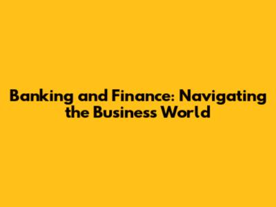 Banking And Finance: Navigating The Business World