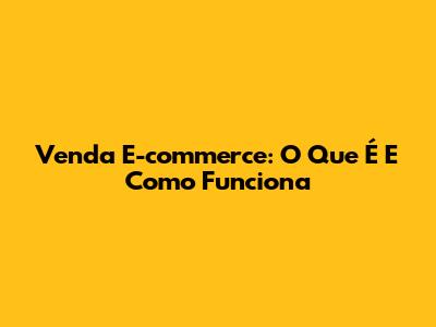 Venda E-commerce: O Que É E Como Funciona