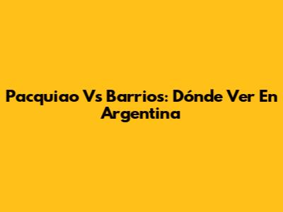 Pacquiao Vs Barrios: Dónde Ver En Argentina