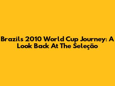 Brazil's 2010 World Cup Journey: A Look Back At The Seleção