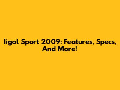 Iigol Sport 2009: Features, Specs, And More!