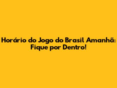 Horário Do Jogo Do Brasil Amanhã