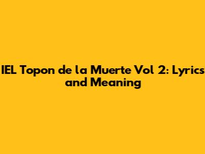 What's up, music lovers! Today we're diving deep into the electrifying world of IEL Topon de la Muerte Vol 2. This track has been making waves, and you're probably wondering what all the hype is about, or maybe you're just trying to sing along but can't quite catch every word. Well, you've come to the right place, guys! We're going to break down the lyrics, explore the meaning behind them, and give you the full scoop on this banger. Get ready to understand every bar and hook because we're about to unpack IEL Topon de la Muerte Vol 2. So, crank up the volume, grab your headphones, and let's get into it!
