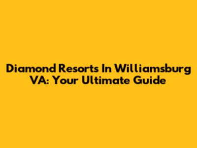 Diamond Resorts In Williamsburg VA: Your Ultimate Guide