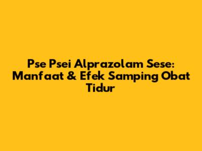 Pse Psei Alprazolam Sese: Manfaat & Efek Samping Obat Tidur