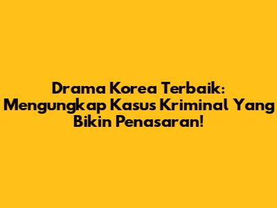 Drama Korea Terbaik: Mengungkap Kasus Kriminal Yang Bikin Penasaran!