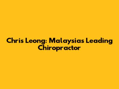 Chris Leong: Malaysia's Leading Chiropractor