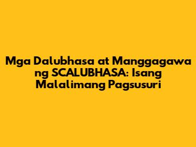 Ang epekto ng kanilang trabaho ay malawak at malalim. Sa pamamagitan ng kanilang mga inisyatiba sa edukasyon, tinutulungan nila ang mga kabataan na makamit ang kanilang mga pangarap at magkaroon ng magandang kinabukasan. Sa pamamagitan ng mga programa sa kultura, pinapalakas nila ang ating pagkakakilanlan at pinapanatili ang ating mga tradisyon. At sa pamamagitan ng mga serbisyong pangkalusugan, sinisiguro nila na ang ating mga mamamayan ay may access sa kinakailangang pangangalaga at suporta. Ang mga dalubhasa at manggagawa ng SCALUBHASA ay hindi lamang nagtatrabaho para sa kanilang sarili; nagtatrabaho sila para sa ikabubuti ng lahat. Ang kanilang kontribusyon ay hindi matatawaran, at ang kanilang dedikasyon ay inspirasyon sa ating lahat. Sila ang tunay na mga bayani ng ating lipunan, na nagtatrabaho nang walang pagod para sa ikabubuti ng lahat.