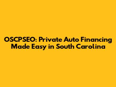 OSCPSEO: Private Auto Financing Made Easy In South Carolina