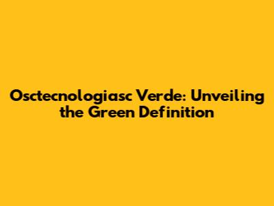 What Exactly Is Osctecnologiasc Verde?
