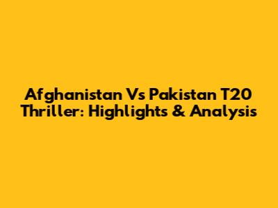 Afghanistan Vs Pakistan T20 Thriller: Highlights & Analysis