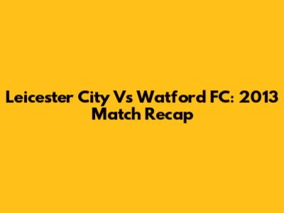 Leicester City Vs Watford FC: 2013 Match Recap