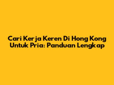 Cari Kerja Keren Di Hong Kong Untuk Pria: Panduan Lengkap