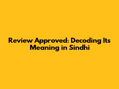 Review Approved: Decoding Its Meaning In Sindhi
