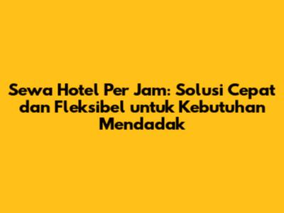 Sewa hotel per jam adalah solusi cerdas bagi mereka yang membutuhkan tempat menginap yang fleksibel dan efisien. Dengan memahami konsep, manfaat, dan cara menemukan layanan ini, Anda dapat memanfaatkan waktu dan anggaran Anda dengan lebih baik. Apakah Anda seorang pelancong, pebisnis, atau siapa saja yang membutuhkan privasi dan kenyamanan, sewa hotel per jam adalah pilihan yang patut dipertimbangkan.
