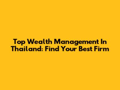 Top Wealth Management In Thailand: Find Your Best Firm