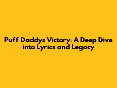 Hey music lovers, ever found yourselves completely captivated by a song? For me, one of those tracks is Puff Daddy's (now Diddy) iconic "Victory." This song isn't just a track; it's a sonic experience, a raw emotional rollercoaster, and a testament to the power of hip-hop. So, guys, let's dive deep into the heart of "Victory," exploring its powerful lyrics, uncovering its hidden meanings, and appreciating its lasting impact on the music world. We'll break down everything from the opening bars to the final fade, giving you a fresh perspective on this hip-hop classic.