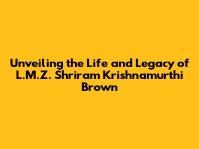 Hey guys, let's dive into the fascinating story of L.M.Z. Shriram Krishnamurthi Brown! This is gonna be a deep dive into the life of a person who has made a significant impact. We'll explore his early life, the milestones, the impact on the world, and some personal insights. Buckle up, because it's going to be a captivating journey.