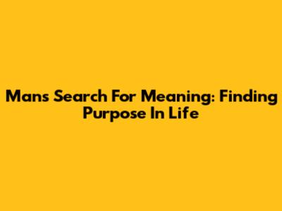 Man's Search For Meaning: Finding Purpose In Life