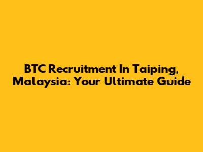BTC Recruitment In Taiping, Malaysia: Your Ultimate Guide