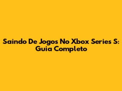 Saindo De Jogos No Xbox Series S: Guia Completo